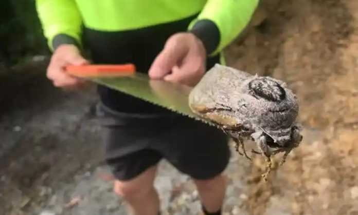 Οι οικοδόμοι πήραν φωτογραφίες από το εύρημα τους πριν μεταφέρουν το σκώρο ασφαλή στο τροπικό δάσος.