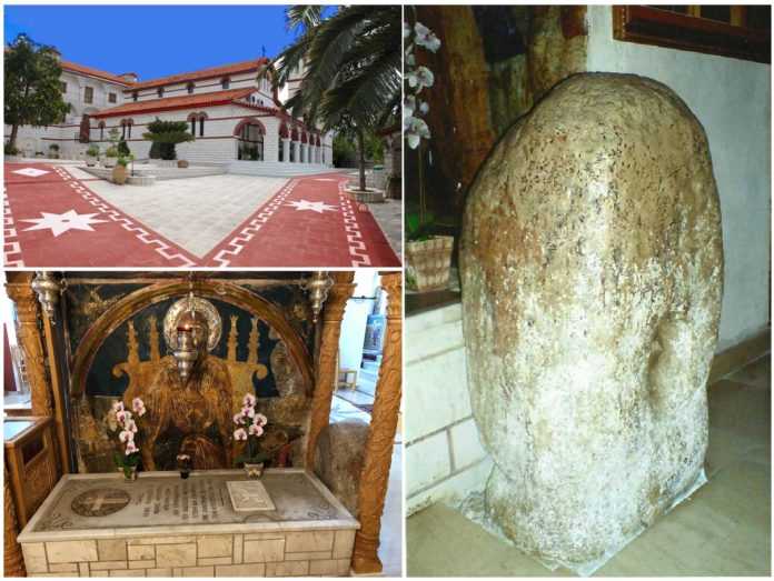 Δίπλα στον τάφο σώζεται και η ωοειδής πέτρα, πάνω στην οποία στηρίχθηκε η Αγία προσευχόμενη κατά την στιγμή του αποκεφαλισμού της και όπου πολλά θαύματα γίνονται κατά καιρούς στους διαφόρους προσκυνητές.