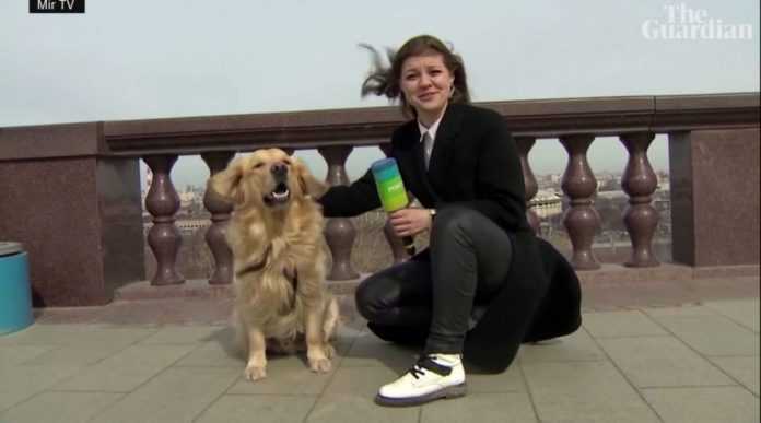 Ρωσίδα τηλεοπτική ρεπόρτερ έζησε… σκυλίσια μέρα σε απευθείας μετάδοση: ένα Γκόλντεν Ριτρίβερ, κάνοντας ένα άλμα, της άρπαξε το μικρόφωνο από το χέρι κι άρχισε να τρέχει, ξεκινώντας μια καταδίωξη που άφησε άναυδο το προσωπικό στο στούντιο – και έλιωσε τις καρδιές των τηλεθεατών.