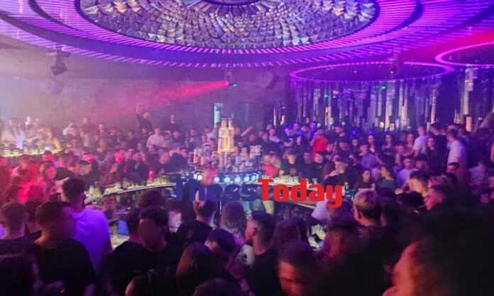 Μεσάνυχτα της ίδιας βραδιάς σχηματίζονται ουρές από δεκάδες καλοντυμένους νέους έξω από γνωστό κλαμπ της περιοχής. Τα μέτρα προστασίας για τον κορωνοϊό πάνε… περίπατο, εν αντιθέσει με τους σωματικούς ελέγχους που έκαναν οι σεκιούριτι της επιχείρησης.