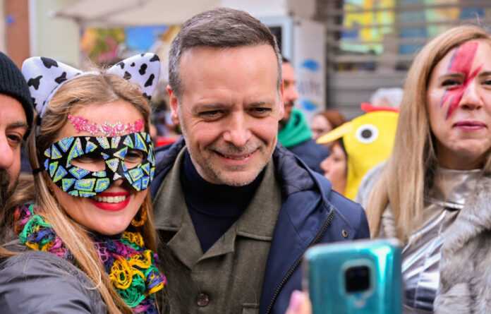 Το κέφι και ο χορός συνεχίστηκαν στην πλατεία Κοτζιά, όπου στήθηκε ένα μεγάλο αποκριάτικο πάρτι, με ζωντανή μουσική και με οικοδεσπότη τον Δημήτρη Μακαλιά.