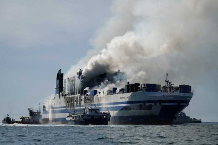 Συγκλονιστικό βίντεο ήρθε στο φως της δημοσιότητας και απεικονίζει την επικίνδυνη επιχείρηση της ΕΜΑΚ στο φλεγόμενο πλοίο Euroferry Olympia.