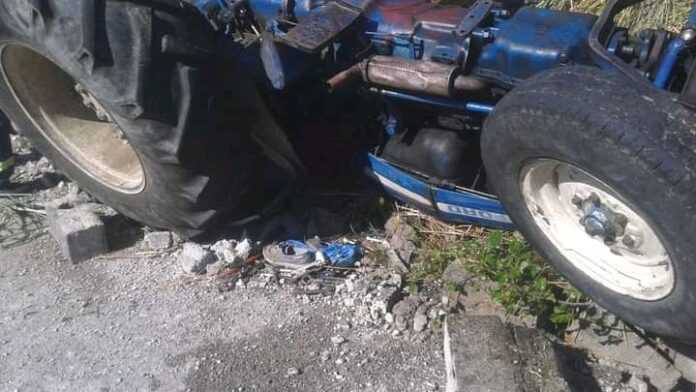 Το τρακτέρ πέρασε τη διασταύρωση με την εθνική οδό και έπεσε πάνω σε μία στάση λεωφορείου πριν καταλήξει πάνω σε φράκτη και δέντρο παρακείμενου οικοπέδου.