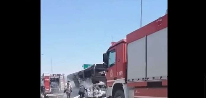 Λεωφορείο πήρε φωτιά στην Ιόνια οδό – Οι επιβάτες και ο οδηγός πρόλαβαν να βγουν από το όχημα
