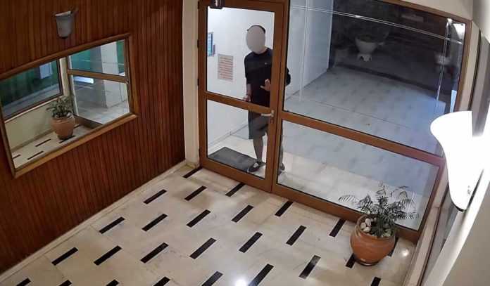 Στο βίντεο φαίνεται η νεαρή γυναίκα καθώς πλησιάζει στην είσοδο της πολυκατοικίας, να κοιτά πίσω της. Λίγα δευτερόλεπτα αφού ανοίγει και μπαίνει μέρα, στο πλάνο εμφανίζεται ένας νεαρός με βερμούδα, ο οποίος πλησιάζει στην πόρτα, κοιτά μέσα και αφού διαπιστώνει πως είναι κλειστή, φεύγει.