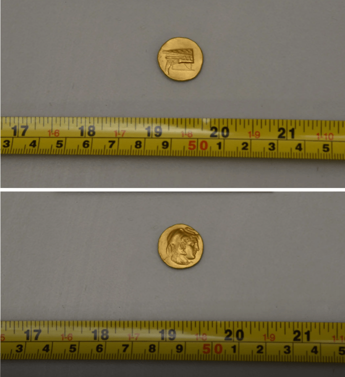 1. Το σπάνιο χρυσό νόμισμα, Στατήρας του Πτολεμαίου Α’ της Αιγύπτου του 4ου αιώνα π.Χ. με διάμετρο -18- χιλιοστά και βάρος -8,5- γραμμάρια,