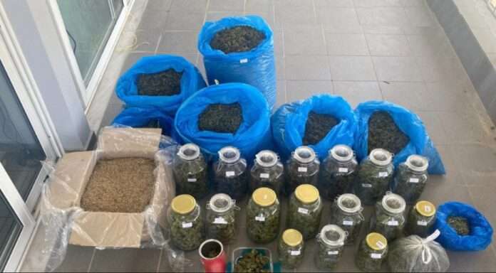 Οι δράστες σκόπευαν να επεκτείνουν την παραγωγή τους, όπως δείχνουν τα δέκα κιλά και 410 γραμμάρια σπόροι κάνναβης που βρέθηκαν στο σπίτι, όπου κατασχέθηκαν ακόμη τρεις ζυγαριές ακρίβειας και ένας τρίφτης. Στον ίδιο χώρο, βρέθηκαν ένα κυνηγετικό όπλο, ένα πιστόλι κρότου με γεμιστήρα και 60 φυσίγγια και άλλα 140 φυσίγγια διαφόρων τύπων και διαμετρημάτων.