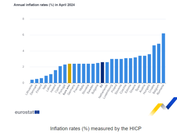 Η Ελλάδα για έβδομο συνεχόμενο μήνα βρίσκεται πάνω από το μέσο όρος της Ευρωζώνης (2,4%) και στον γενικό δείκτη κατατάσσεται έβδομη από το τέλος.
