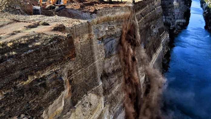 Συνεχίζονται οι κατολισθήσεις στον Ισθμό της Κορίνθου (video)