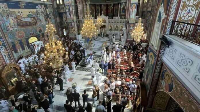 Τελευταίο αντίο στην 19χρονη ναυτική δόκιμο Θάλεια Κορδαμπάλου, που πέθανε στο πρώτο της ταξίδι. Τραγικές φιγούρες στη Λάρισα οι γονείς και οι στενοί συγγενείς της. Με τη γαλανόλευκη σκεπασμένο το λευκό της φέρετρο…