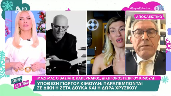 Ο δικηγόρος του Γιώργου Κιμούλη, Βασίλης Καπερνάρος μίλησε στην εκπομπή λέγοντας ότι «οι γιατροί θα δικαστούν για τις ψευδείς ιατρικές βεβαιώσεις που έδωσαν στη Ζέτα Δούκα».