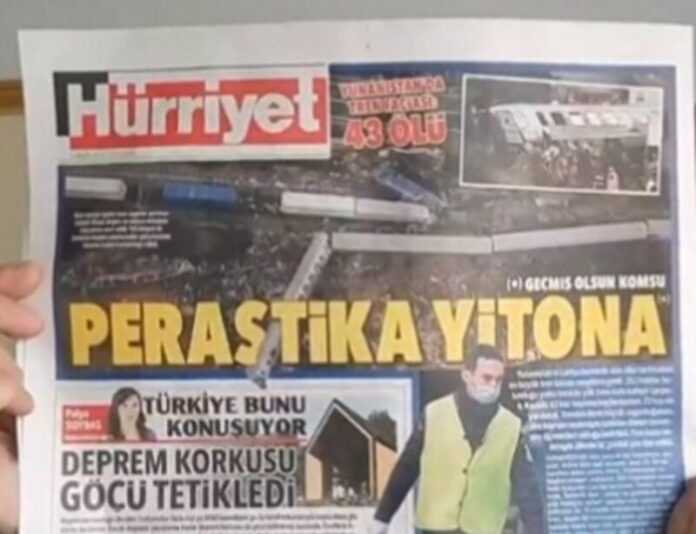 Η Τουρκία έστειλε μήνυμα συμπαράστασης προς την Ελλάδα μέσω της εφημερίδας Hurriyet, η οποία έχει πρωτοσέλιδο το πολύνεκρο δυστύχημα.