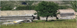 Μεγάλες ποσότητες, όμως, τέτοιων υλικών μαζί με πάνελ και τεράστιους εξαεριστήρες, βρίσκονται κρυμμένα πίσω από μιά μισοερειπωμένη αποθήκη σε κτήμα πέντε στρεμμάτων, συμφερόντων της οικογένειας του κ.Καχριμάνη στον οικισμό της Αγ. Μαρίνας (Λυκοτρίχι), μετά την Κρύα.