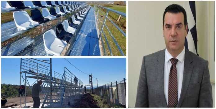 Ο κ. Ψαθάς, ανακοίνωσε την κατασκευή και τοποθέτηση μεταλλικών κερκίδων 250 θέσεων στο γήπεδο Γραμμενίτσας, 150 θέσεων στο γήπεδο Καμπής και 150 θέσεων στο γήπεδο Καλαμιάς.