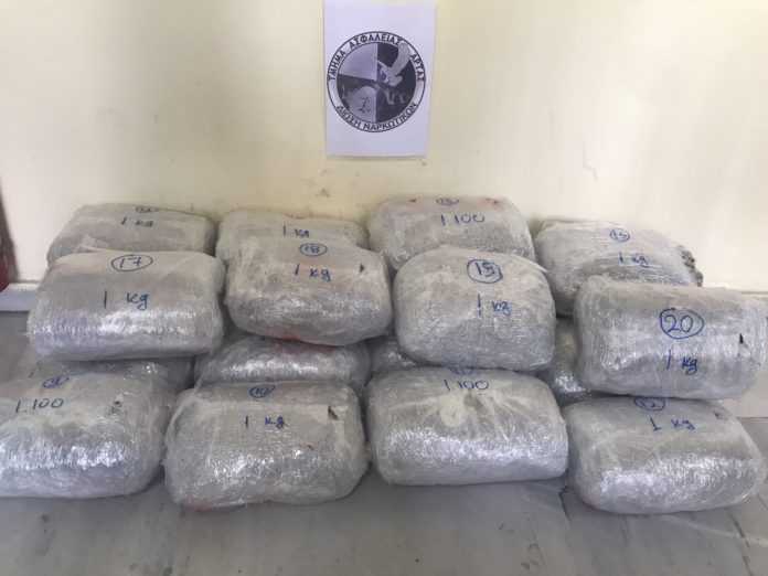 Ακολούθως, σε έρευνα που έγινε στο παραπάνω αυτοκίνητο, βρέθηκαν στο χώρο των αποσκευών του οχήματος, (20) ανισοβαρείς συσκευασίες με ακατέργαστη κάνναβη, συνολικού βάρους (20) κιλών και (500) γραμμαρίων.