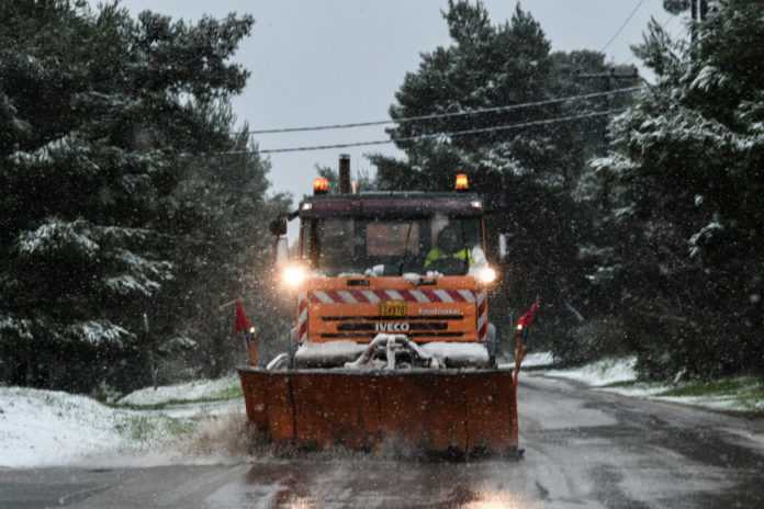 Στα ορεινά χωριά χιόνισε και χρειάστηκε να επέμβουν τα μηχανήματα αποχιονισμού για να γίνεται η κυκλοφορία.