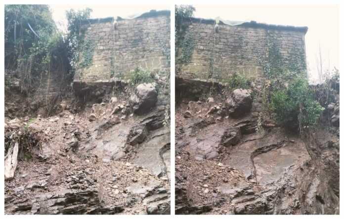 λιθόκτιστη κατασκευή του νερόμυλου σε άμεσο κίνδυνο, καθώς τμήματα του φυσικού