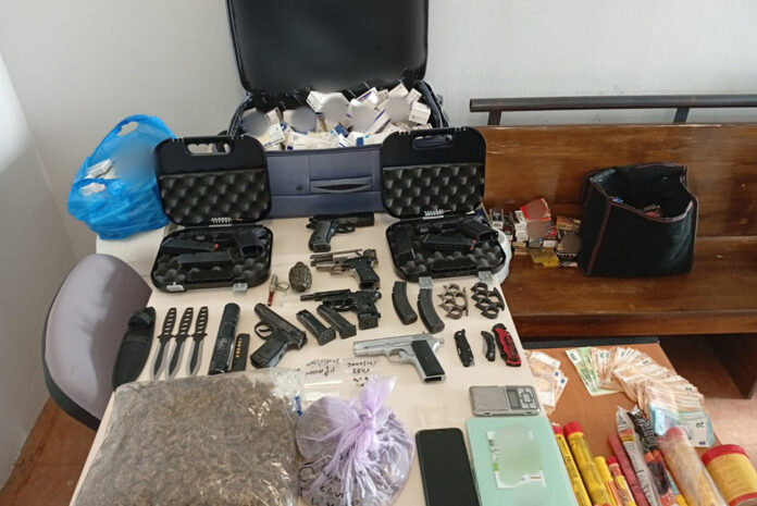 Οι αστυνομικοί εντόπισαν τον κατηγορούμενο και κατά τον έλεγχο βρέθηκαν στην κατοχή του 1.550 ευρώ. Ακολούθησαν έρευνες σε δύο κατοικίες που χρησιμοποιούσε, όπου εντοπίστηκε μεγάλος αριθμός ναρκωτικών και όπλων.