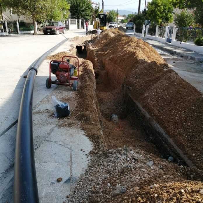 Εργασίες κατασκευής δικτύου αποχέτευσης λυμάτων βιολογικού καθαρισμού στις Δ.Ε Κομποτίου και Αράχθου.