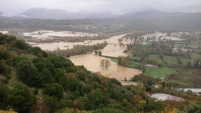 Στην παλιά εθνική οδό Ηγουμενίτσας – Ιωαννίνων, στο χωριό Κορύτιανη, τα νερά έχουν ήδη καλύψει μεγάλο μέρος του οδοστρώματος.