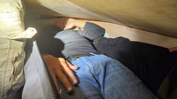 Κατόπιν αξιοποίησης πληροφοριών, τέθηκε σε διακριτική επιτήρηση Ι.Χ.Ε. οχήματος με οδηγό έναν 52χρονο αλλοδαπό, ο οποίος ξεκινώντας από την Αθήνα έφτασε στα Τρίκαλα, όπου επιβίβασε δύο αλλοδαπούς, ηλικίας 26 και 23 ετών και τους μετέφερε σε οικία που διαμένει ο 48χρονος ημεδαπός. Στο σημείο μετέβη φορτηγό όχημα, με οδηγό τον 48χρονο, ο οποίος επιβίβασε από κοινού με τον 52χρονο τα άλλα δύο άτομα στο Φ/Γ όχημα και τα έκρυψαν επιμελώς σε ειδικά διαμορφωμένο χώρο (κρύπτη), με σκοπό να διευκολύνουν την παράνομη έξοδό τους από τη χώρα.