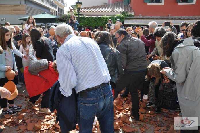 Λίγο μετά τις 9.30, η καμπάνα του Αγίου Χαραλάμπους σήμανε γιορτινά και στο Σαϊτάν Παζάρ, καθώς και σε ολόκληρο το πλακόστρωτο έσπασαν εκατοντάδες πήλινες στάμνες σηματοδοτώντας το πέρασμα από την θλίψη του θανάτου στην χαρά της ζωής.
