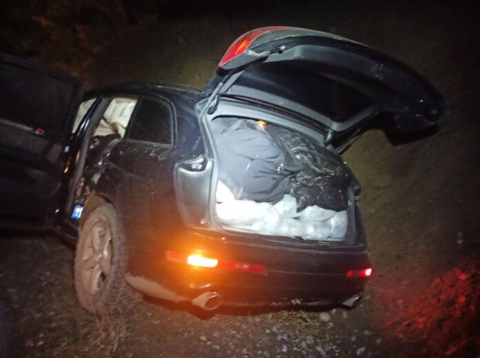 Κατά την προσπάθεια διαφυγής του, ο οδηγός έχασε τον έλεγχο του οχήματος, με αποτέλεσμα αυτό να εκτραπεί της πορείας του και να ακινητοποιηθεί, ενώ ο οδηγός στη συνέχεια τράπηκε σε φυγή πεζός, εκμεταλλευόμενος το σκοτάδι, καθώς και το δασώδες και δύσβατο της περιοχής.
