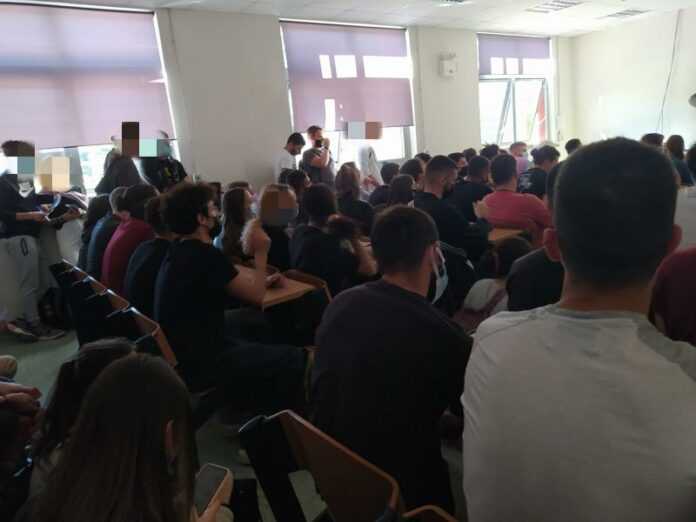 Σύμφωνα με την καταγγελία του Φοιτητικού Συλλόγου του Τμήματος Μηχανικών Επιστήμης των Υλικών στο οι φοιτητές μεταφέρθηκαν για τη διεξαγωγή του μαθήματος της Χημικής Θερμοδυναμικής στην αίθουσα του καινούργιου κτηρίου του τμήματος, μια αίθουσα υπερβολικά πολύ μικρή για τον όγκο των φοιτητών με αποτέλεσμα να υπάρξει συνωστισμός, ενώ περισσότεροι από 30 φοιτητές παρακολουθούσαν καθήμενοι στο πάτωμα ή όρθιοι.