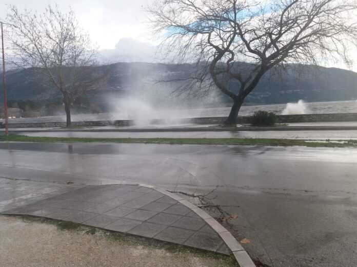 Προσοχή χρειάζεται σε όσους κινούνται στην παραλίμνια περιοχή και ιδίως στην Ακτή Μιαούλη, καθώς ο κυματισμός της λίμνης είναι μεγάλος και τα νερά βγαίνουν με ορμή στον δρόμο.