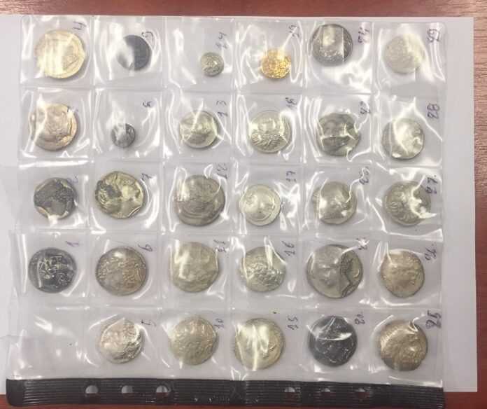 Ειδικότερα, σε διαμέρισμα που μίσθωνε ο κατηγορούμενος στα Ιωάννινα βρέθηκαν συνολικά -29- αρχαία νομίσματα (26 αργυρά, 2 χάλκινα και 1 χρυσό), τα οποία όπως προέκυψε ύστερα από εξέτασή τους από αρμόδιο αρχαιολόγο της Εφορείας Αρχαιοτήτων Ιωαννίνων ανάγονται στους ελληνιστικούς χρόνους.
