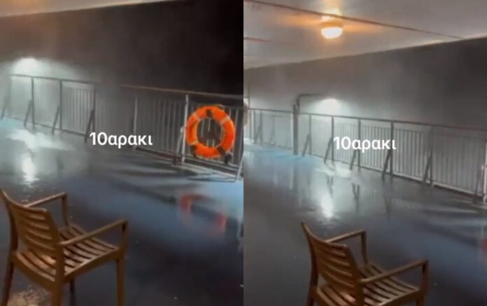 Πάντως, απορία πολλών προκάλεσε μια καρέκλα, η οποία δεν κουνήθηκε από τη θέση της. Όπως διευκρίνισε, ο κύριος που δημοσίευσε το βίντεο, σε εκείνο το σημείο το καράβι είναι κλειστού τύπου και προστατεύεται από τον αέρα. «Το καράβι στο συγκεκριμένο σημείο είναι εντελώς κλειστού τύπου και είμαστε από την μεριά που υποτίθεται φυσά λιγότερο», έγραψε.