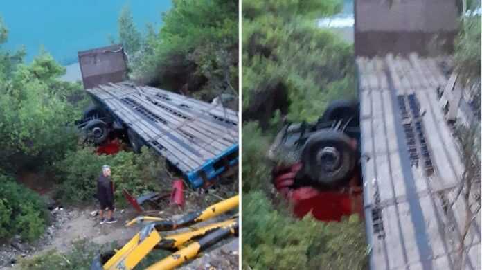 Τροχαίο ατύχημα σημειώθηκε λίγο έξω από τα Ψακούδια Χαλκιδικής, όταν νταλίκα κάτω από αδιευκρίνιστες συνθήκες έφυγε από το δρόμο και έπεσε σε γκρεμό.