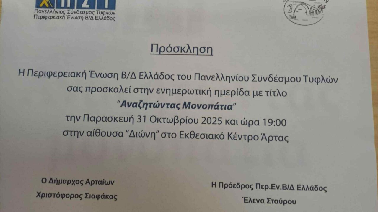 Μετά το δημοσίευμα του artinos.gr που αποκάλυψε πως ο Σύλλογος Τυφλών και Φίλων Ηπείρου «Ελπίδα» αποκλείστηκε από την εκδήλωση για την προσβασιμότητα και το λευκό μπαστούνι, ο Δήμος έβγαλε ανακοίνωση για να «ξεκαθαρίσει» τα πράγματα.