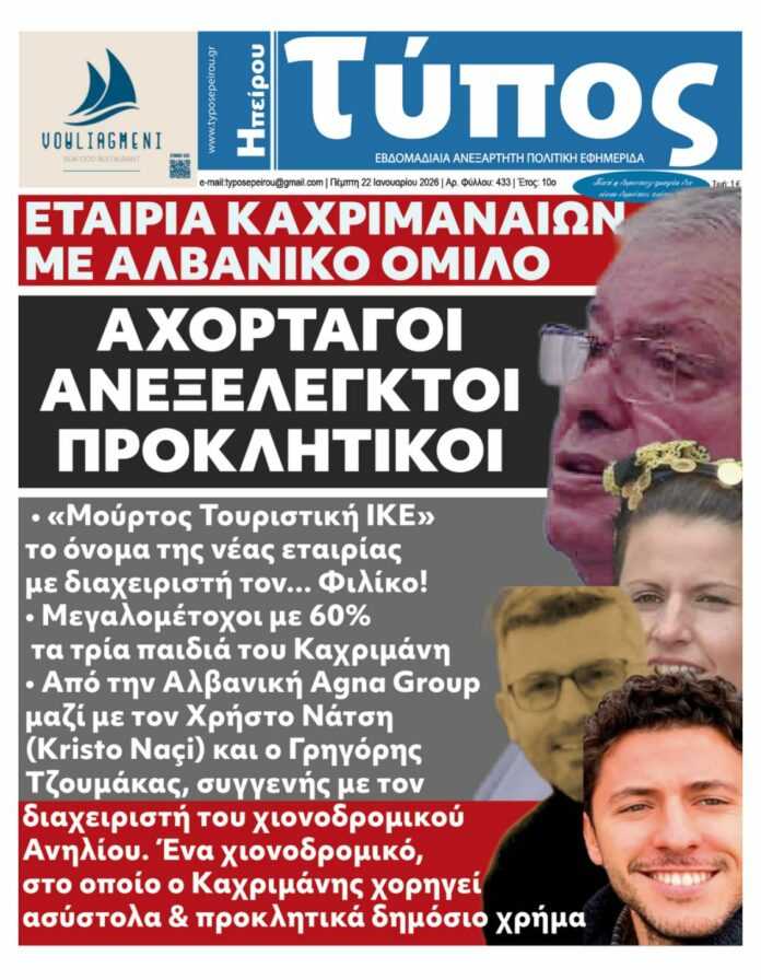 Οι δουλειές των παιδιών του Καχριμάνη ξεσηκώνουν – Εκρηκτική απήχηση για το πρωτοσέλιδο του «Τύπος Ηπείρου»: Πάνω από 200 κοινοποιήσεις σε ένα 24ωρο