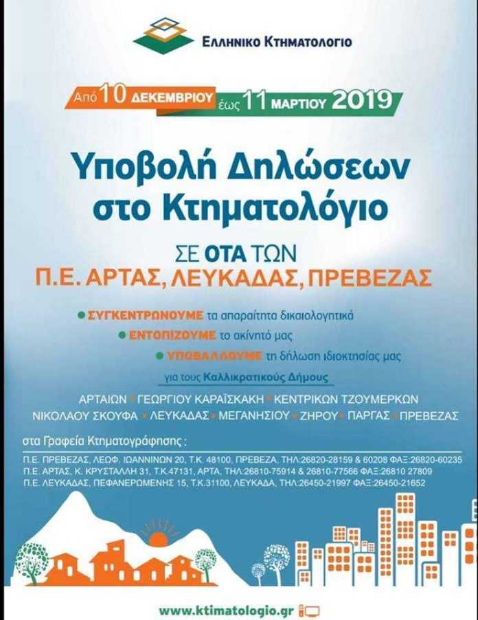 Στις 10 Δεκεμβρίου ξεκινά η διαδικασία Κτηματογράφησης στην Π.Ε Πρέβεζας