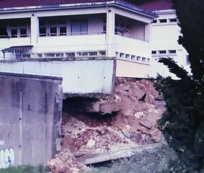 Κυριολεκτικά στον… αέρα βρίσκεται μια πτέρυγα του 9ου Δημοτικού Σχολείου Άρτας, μετά την υποχώρηση του στηθαίου στήριξης, η οποία, σύμφωνα με το Δήμο, οφείλεται στις έντονες βροχοπτώσεις των τελευταίων ημερών.