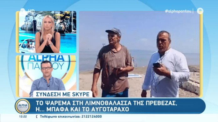 Ο παραδοσιακός ψαράς Σταύρος Κοντζαμουράτογλου μίλησε με τους δημοσιογράφους του Alpha TV κ. Γιώργο Γρηγοριάδη, Μαρία Νικόλτσιου και Έφη Αλεβίζου, όπου εξήγησε την διαδικασία του παραδοσιακού τρόπου ψαρέματος αλλά και η κυρία Ειρήνη Καραπιπέρη έδειξε στους τηλεθεατές της εκπομπής τον τρόπο που βγάζουμε το αβγό, με χειρουργική ακρίβεια απο το ψάρι “Μπάφα” και τον τρόπο που το αλατίζουμε ώστε να διατηρηθεί σωστά μέχρι την κατανάλωση του.