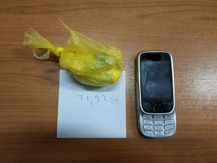Σε έλεγχο που διενεργήθηκε, βρέθηκε  στην κατοχή της και κατασχέθηκε μία συσκευασία που περιείχε ηρωίνη, βάρους (71,91) γραμμαρίων, την οποία προόριζε για διακίνηση.
