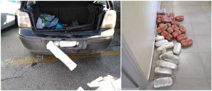 Ειδικότερα, κατόπιν αξιοποίησης πληροφοριών και στοιχείων, οι αστυνομικοί  εντόπισαν και ακινητοποίησαν για έλεγχο Ι.Χ.Ε. αυτοκίνητο στο οποίο επέβαιναν οι δύο δράστες και μετά από έρευνα που έγινε σε αυτό, βρέθηκαν σε ειδικά διαμορφωμένες κρύπτες πίσω από τις πλαϊνές ταπετσαρίες και τον πίσω προφυλακτήρα, τριάντα πέντε (35) δέματα με ακατέργαστη κάνναβη, συνολικού βάρους (18) κιλών και (620) γραμμαρίων.