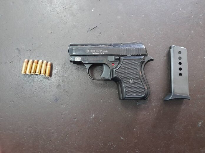 Όπως διαπιστώθηκε, επρόκειτο για πιστόλι διαμετρήματος 8mm, με γεμιστήρα με έξι φυσίγγια, τα οποία κατασχέθηκαν.