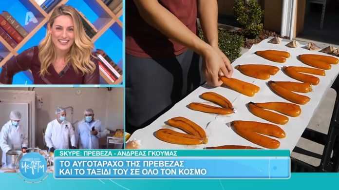 Την τιμητική του είχε το αυγοτάραχο της Πρέβεζας όπου στην εκπομπή της Ελεονόρας Μελέτη έγινε η παρουσίασή του. Με την βοήθεια του Ανδρέα Γκούμα όπου διατηρεί επιχείρηση επεξεργασίας αλιευμάτων όπως Αυγοτάραχο , χταπόδι , γαρίδα , γαύρο και άλλα προϊόντα έδειξε μαζί με την παρουσιάστρια της εκπομπής την διαδικασία παρασκευής του αυγοτάραχου.