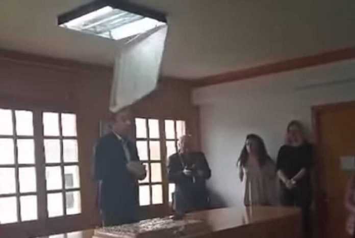 Βίντεο ΣΟΚ: Η στιγμή που φωτιστικό πέφτει στο κεφάλι του δημάρχου Ιωαννίνων (vid)