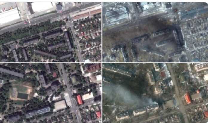 Δορυφορικές φωτογραφίες που ελήφθησαν σήμερα το πρωί δείχνουν εκτεταμένες ζημιές σε αστικές υποδομές και σε πολυκατοικίες σε όλη την πόλη της Μαριούπολης, στη νότια Ουκρανία, ανακοίνωσε ιδιωτική αμερικανική εταιρία.