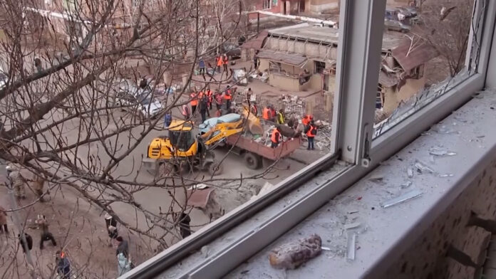Πολυκατοικίες και αυτοκίνητα υπέστησαν σοβαρές ζημιές όταν η κατοικημένη περιοχή στο Makeyevka, μια πόλη λίγο έξω από το Ντόνετσκ, χτυπήθηκε από πύραυλο το βράδυ της Τρίτης.