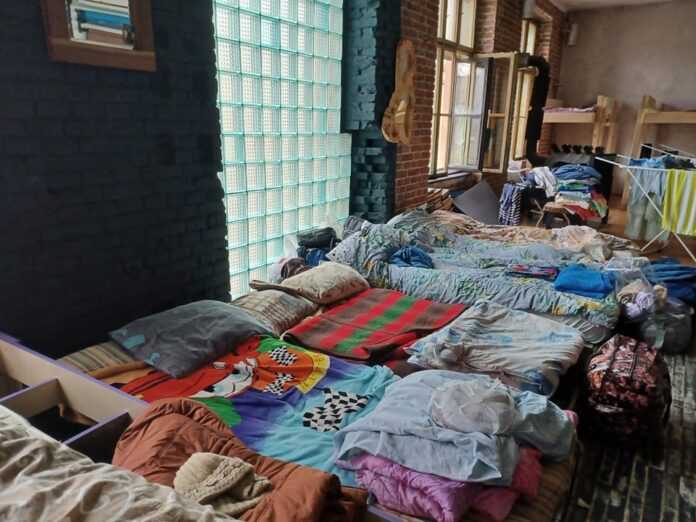 Παιδιά, γονείς και κατοικίδια αλλά και εθελοντές από άλλες χώρες που ήρθαν στην Ουκρανία για να βοηθήσουν τους πρόσφυγες, διαμένουν εκεί.
