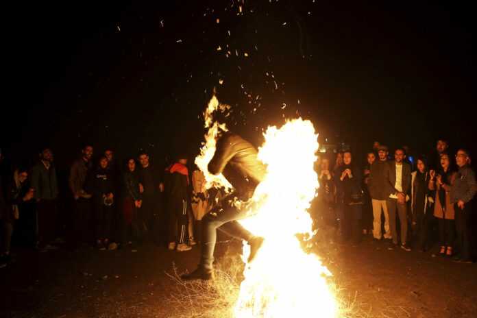 Σύμφωνα με το έθιμο, οι Ιρανοί πηδούν πάνω από φωτιές και ρίχνουν πυροτεχνήματα σε δημόσιους χώρους, για να αποχαιρετήσουν τη χρονιά που φεύγει.
