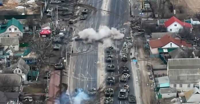 Όπως φαίνεται στο το βίντεο μια φάλαγγα ρωσικών αρμάτων μάχης κατευθύνεται προς το Κίεβο ενώ ξαφνικά χτυπούν οι Ουκρανοί με αντιαρματικά.