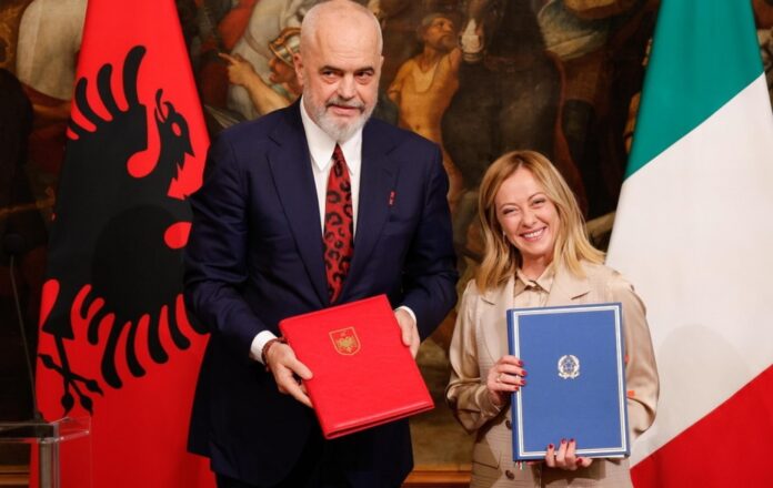 Η εν λόγω συμφωνία, την οποία υπέγραψαν η Ιταλίδα πρωθυπουργός Τζόρτζια Μελόνι και ο Αλβανός πρωθυπουργός Έντι Ράμα, προβλέπει τη δημιουργία δύο κλειστών κέντρων για παράτυπους μετανάστες στη βόρεια Αλβανία στα οποία θα ισχύει η ιταλική νομοθεσία.