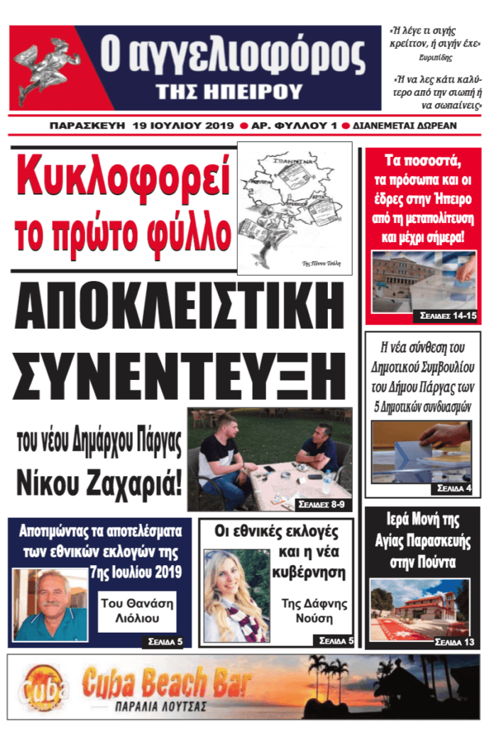 Στο πρώτο φύλλο, φιλοξενούμε τον νέο Δήμαρχο Πάργας κ. Νίκο Ζαχαριά σε μια αποκλειστική συνέντευξη!