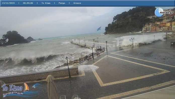 Στο έλεος της κακοκαιρίας βρέθηκε τις τελευταίες ώρες η Πάργα. Τα κύματα χτύπησαν με απίστευτη ένταση την περιοχή και έφτασαν στην παραλία, πνίγοντας στην κυριολεξία τα καταστήματα στον πεζόδρομο.